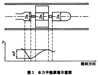 由于流體通過渦輪時會對渦輪產(chǎn)生一個軸向推力,使軸承的摩擦轉矩增大,加速鈾承磨損,為了消除軸向力,需在結構上采取水力平衡措施,這方法的原理見圖2所示。由于渦輪處直徑DH略小于前后支架處直徑Ds,所以,在渦輪段流通截面擴大,流速降低,使流體靜壓上升△P,這個△P的靜壓將起到抵消部分軸向推力的作用。
