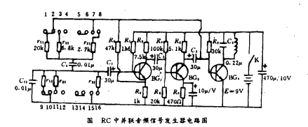診斷器是一個(gè)RC串并聯(lián)網(wǎng)絡(luò)低頻振蕩器,經(jīng)LC諧頻放大的音頻信號(hào)發(fā)生器見(jiàn)圖,圖中BG1、BG2、BG3均為3DG6D。