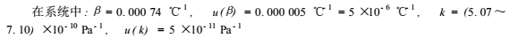 式中:t所有校準點在流量計處流體溫度的平均值,℃;m被校流量計的流量校準點數(shù)目;ti*i校準點在流量計處的流體溫度的平均值,℃;qi*i校準點被校流量計的實際流量,L/min;β流體的體積膨脹系數(shù),℃^-1;k流體的壓縮系數(shù),Pa^-1;pi*i校準點在流量計處的流體表壓力的平均值,Pa。