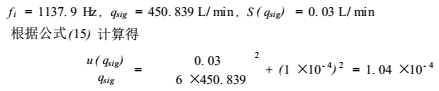 式中:q(fi)用*小二乘法公式計算出的*i校準點的頻率fi所對應的流量值,L/min。