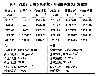 數(shù)據(jù)說明:為了更直觀地探討流量計在合理選擇誤差評定的方法以及由此涉及儀表計量特性等具體因素的影響,故在表1和表2中均分別以航空RP-3號噴氣燃油(低黏度)、航空10號液壓油(中黏度)為檢定介質(zhì)在相同的量程下檢定分別出2組數(shù)據(jù);表1中誤差評定的計算公式來自JJG1037-2008《渦輪流量計檢定規(guī)程》(以下簡稱規(guī)程)中(1)~(4),得出示值誤差(線性度);表2中誤差評定的計算來自*小二乘法運算公式算出值進行數(shù)據(jù)擬合求出理論值,*后得出儀表的引用誤差。此計算公式來自為《規(guī)程》以外的誤差評定方法。