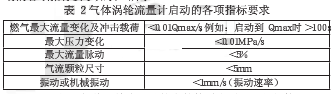 在啟動氣體渦輪流量計(jì)時,應(yīng)保持相對較慢的加壓速度,如果過快的加壓將有可能損壞氣體渦輪的葉片,氣體渦輪流量計(jì)啟動的各項(xiàng)指標(biāo)要求如表2所示。
