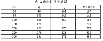 (十三)應(yīng)用時必須保證流量計(jì)的氣體出口與入口連接準(zhǔn)確,并且每一個螺栓都應(yīng)受力勻稱,為了確保測量準(zhǔn)確度,需保障管線中不含任何形式的密封件,密封件的使用需根據(jù)設(shè)計(jì)要求,尺寸類型如表3所示。