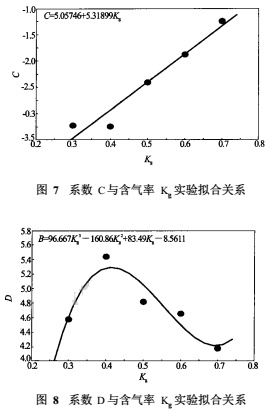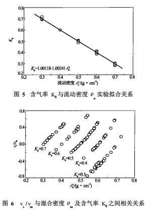 比值vs/vm與混合密度ρm、含氣率Kg之間的實(shí)驗(yàn)擬合關(guān)系(見(jiàn)圖6)??梢钥闯鰧?duì)于相同的含氣率Kg,vs/vm隨著混合密度ρm的增大而增大,從物理上可以理解為隨著氣液流型向泡狀流方向發(fā)展,其相間滑脫影響也逐漸增大。