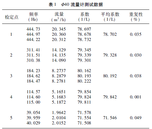 此次試驗測試選用兩臺測供暖水流量計,口徑分別為Φ40、Φ25,主要考慮40 和25 口徑的流量計應(yīng)用較多,同時流量銜接,更具有代表性。其主要參數(shù)如下: