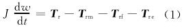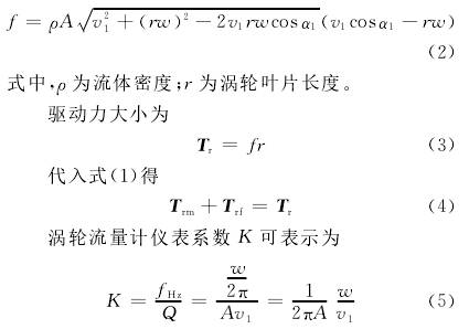 渦輪在轉(zhuǎn)動(dòng)時(shí)所受的力矩大致可分:流體對渦輪的推動(dòng)力矩Tr,機(jī)械摩擦力矩Trm,流體對渦輪產(chǎn)生的流動(dòng)阻力矩Trf和電磁阻力矩Tre。渦輪運(yùn)動(dòng)方程可以表示為