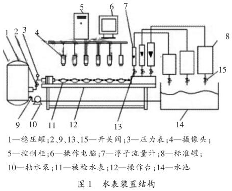 水表檢定裝置是全自動(dòng)水表校驗(yàn)裝置,水表檢定裝置以計(jì)算機(jī)為核心,它在需要檢定水表上方安裝攝像裝置,連接到圖像采集和高速計(jì)算器中,計(jì)算器可以識(shí)別水表指針的流量數(shù)值,自動(dòng)控制水流量,實(shí)現(xiàn)水表檢驗(yàn)的全自動(dòng)化,針對(duì)水表檢定裝置存在的問(wèn)題提出解決方案,減少水表檢定裝置在使用過(guò)程中出現(xiàn)質(zhì)量問(wèn)題,讓水表檢定裝置可以不斷完善。