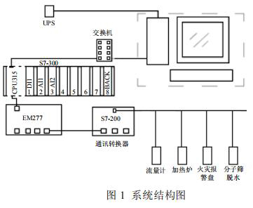 集氣站是收集氣井所生產(chǎn)天然氣的站場(chǎng),在集氣站內(nèi)對(duì)天然氣進(jìn)行節(jié)流降壓、加熱、調(diào)壓計(jì)量等各種工藝預(yù)處理,設(shè)備眾多且分散。為方便進(jìn)行檢測(cè)和操作,必須進(jìn)行統(tǒng)一的數(shù)據(jù)采集,在監(jiān)控臺(tái)進(jìn)行數(shù)據(jù)的管理。集氣站設(shè)備主要包括加熱爐、液體渦輪流量表、分子篩、火災(zāi)報(bào)警盤,以及供電設(shè)備 UPS 等,這些不同廠家的設(shè)備基本都支持Modbus 協(xié)議,通過(guò) Modbus 通訊可以將這些數(shù)據(jù)采集。為了有效降低成本,設(shè)計(jì)了如圖 1 所示的系統(tǒng)。系統(tǒng)采用西門子 S7-300 控制器,通過(guò)以太網(wǎng)連接上位機(jī)監(jiān)控軟件,再通過(guò) MP277 連接S7-200 的方式。S7-200 控制器自帶 RS485 接口,能夠進(jìn)行 Modbus 通訊,采集現(xiàn)場(chǎng)各種設(shè)備數(shù)據(jù)。*后通過(guò)以太網(wǎng)通訊將設(shè)備數(shù)據(jù)上傳至監(jiān)控軟件,方便操作人員進(jìn)行監(jiān)控,該方案簡(jiǎn)單有效,能夠?qū)崿F(xiàn)集氣站內(nèi)設(shè)備的狀態(tài)監(jiān)控,數(shù)據(jù)處理,有效的進(jìn)行天然氣的生產(chǎn)工作。