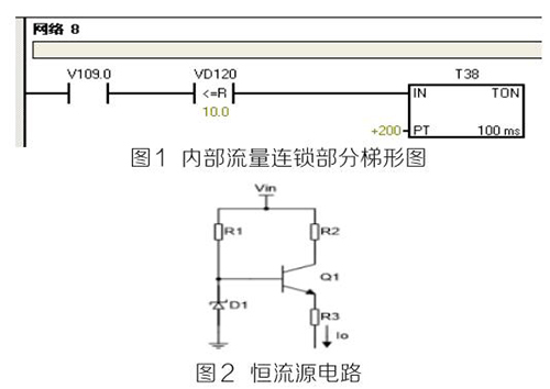 (2)PLC及模塊。PLC及模塊是自動化控制系統(tǒng)主要設(shè)備,且PLC及模塊屬于高集成高精密電子設(shè)備,保持室內(nèi)整潔舒適,可以提高自動化系統(tǒng)運行穩(wěn)定性。PLC及模塊硬件運行可靠,內(nèi)部控制程序是其控制核心軟件,如PLC硬件出現(xiàn)故障或損壞一般直接更換,但原內(nèi)部控制軟件無法上傳,整個控制系統(tǒng)成失控狀態(tài)。所以其內(nèi)部控制程序在調(diào)試驗收合格后應(yīng)及時備份并做好標(biāo)記,為以后修復(fù)PLC故障提供保障。PLC系統(tǒng)的維護技術(shù)人員需掌握一定基礎(chǔ)PLC控制邏輯原理,對準(zhǔn)確判斷PLC故障點有很大的幫助。例如選礦廠水泵房S7-200系列PLC自動抽水系統(tǒng)出現(xiàn)如下故障 :觸摸屏能控制變頻器啟動水泵抽水,但在短時間內(nèi)會自動停泵,導(dǎo)致無法正常抽水。通過故障現(xiàn)象可初步判斷PLC及模塊硬件設(shè)備正常,主要由于某個變量有問題導(dǎo)致連鎖停機。打開備份PLC控制梯形圖程序進行相關(guān)分析,原來是氨水計量表瞬時流量數(shù)值做了連鎖,其在一定時間內(nèi)瞬時流量不大于10m 3 /h時,自動停泵,電磁流量模擬量輸出電流值僅為4ma且無變化,確定氨水計量表有故障。可臨時應(yīng)急維修,模擬量模塊輸入模擬電流值10ma~20ma之間一固定數(shù)值即可恢復(fù)正常運行。制作簡單恒流源電路代替氨水計量表輸出的模擬電流量,實現(xiàn)解決水泵無法正常運行的故障。