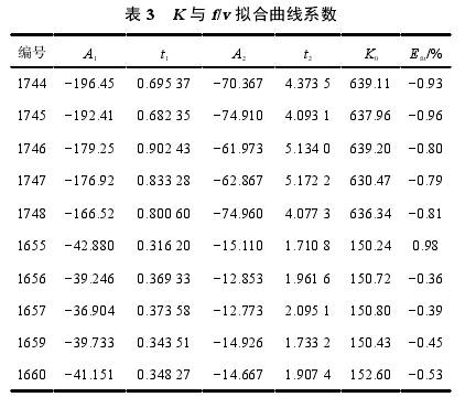 3)Re與f/v成正比,通過雙指數(shù)衰減函數(shù)對K和f/v之間關(guān)系進(jìn)行擬合,進(jìn)而計(jì)算流量,該方法流量計(jì)算結(jié)果與標(biāo)準(zhǔn)流量*大誤差小于±1%;