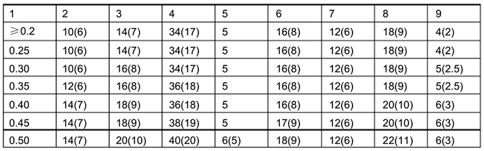 3、上表括號外的數(shù)字為“附加相對*限誤差為零”的數(shù)值,括號內(nèi)的數(shù)字為“附加相對*限誤差為± 0.5%”的數(shù)值。即直管段長度中有一個(gè)采用括號內(nèi)的數(shù)值時(shí), 流量測量的*限相對誤差 τ Q/Q。應(yīng)再算術(shù)相加 0.5%亦即( τ Q/Q+0.5)%