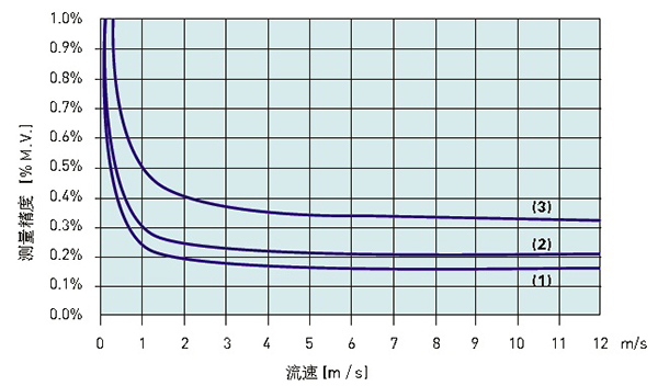 污泥流量計實質(zhì)是測量介質(zhì)的流速,它是速度式流量計。一般電磁流量計推薦流速在0.3m/s-5m/s,在這個范圍內(nèi),流量計測量精度高、線性好、水力損耗小、介質(zhì)對流量計傳感器襯里和電*的磨損也較小。以某品*電磁流量計選型樣本提供的流速曲線為例(見圖3),可以看出流量越小、流速越慢,測量誤差越大,曲線在0.3m/s處存在拐點。