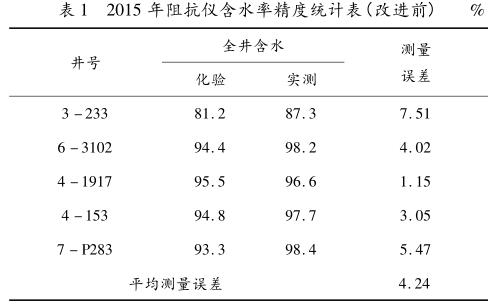 對 2015 年和 2016 年含水率傳感器改進前、后同一時期(3 月份)的含水率測量精度進行了統(tǒng)計,見表 1、表2。改進后的含水率傳感器測量精度提高了 2.85%。