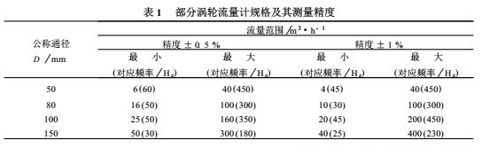 部分渦輪流量計(jì)的規(guī)格和精度如表1所示。