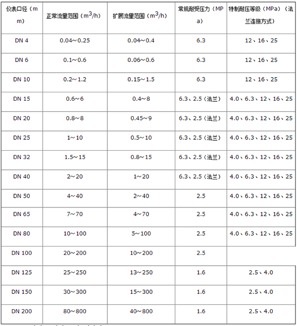 2、儀表口徑(mm)及連接方式:4、6、10、15、20、25、32、40、50、65、80采用螺紋連接