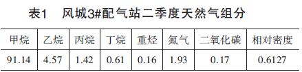 2015年7月,新疆油田公司風(fēng)城3#配氣站的渦輪流量計在現(xiàn)場驗收時就進(jìn)行了此項內(nèi)容的驗證,對該站在用的3套分體式溫壓補(bǔ)償型氣體渦輪流量計(雙顯示式)分別選取了3組數(shù)據(jù)(工況壓力、工況溫度、工況壓縮系數(shù)、標(biāo)況壓縮系數(shù)、工況流量、標(biāo)況流量),將流量計測量的標(biāo)況流量與由氣態(tài)方程計算出的理論標(biāo)況流量進(jìn)行對比,得出兩者誤差,根據(jù)誤差判斷在傳輸過程的失真程度。按**標(biāo)準(zhǔn)要求對風(fēng)城3#配氣站取樣得到的天然氣組分報告,詳細(xì)數(shù)據(jù)如表1所示。根據(jù)表1中的天然氣組分,以及介質(zhì)的工作壓力、工作溫度可計算出工況壓縮系數(shù)Zg,根據(jù)**標(biāo)準(zhǔn)中天然氣標(biāo)準(zhǔn)參比條件,可計算出標(biāo)況壓縮系數(shù)Zn。