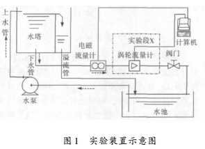實驗是在天津大學(xué)天津市過程參數(shù)檢測與控制重點實驗室的水流量標(biāo)準(zhǔn)裝置上完成的,實驗管徑為100mm,圖1為實驗裝置示意圖。